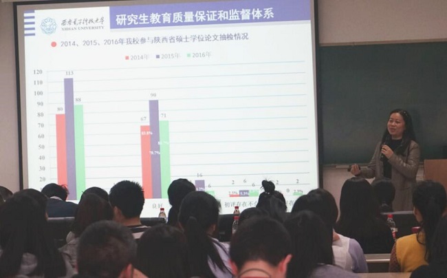 研讨会上,肖嵩教授就我校研究生教育质量保证和监督体系的建设情况,同与会师生进行了交流。她通过大量数据和实例分析了我国研究生培养现状,解读了国家关于深化研究生教育改革的有关政策,提出了当前我校研究生培养所面临的一些问题。在此基础上,她深入介绍了我校研究生教育质量保证和监督体系框架,对我校学位授予标准和学位授予质量保证体系的相关规定进行了重点阐述。她强调,建立与完善研究生教育质量保证和监督体系,是学校研究生教育综合改革的重要内容之一,304am永利集团官网通过研讨会的方式推进此项工作具有重要的创新意义。