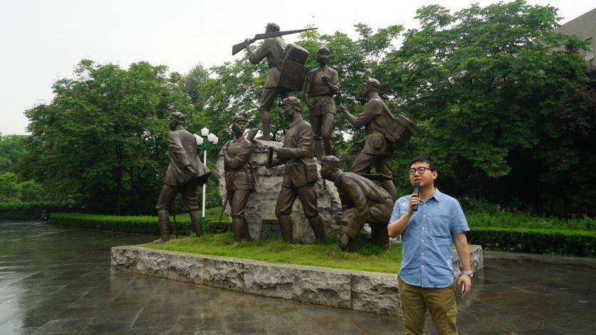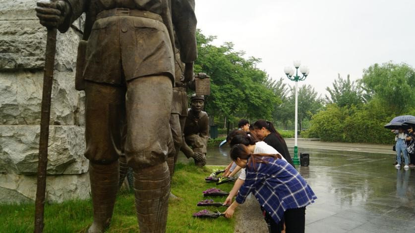 演讲结束后,师生代表向“长征路上办学”雕塑敬献花束,全体成员进行庄严宣誓。誓词与花束表达了同学们对“五四”先驱的缅怀之情,以及对继承“五四”精神的信心。