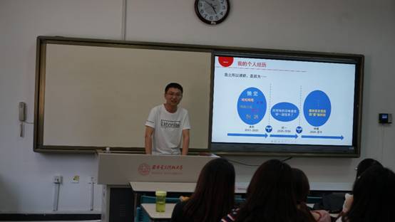 接着,刘丽作为从事技术研发工作的就业学生代表,详细介绍了预期工作定位、招聘信息获取、个人简历制作、笔试面试考核以及最终签约单位五个方面内容,分享了自己在企业就业方向的心路历程。同时,她也提醒大家要在加强专业学习的同时,要积极锻炼人际沟通能力,为自己的未来工作打下良好的沟通能力基础。