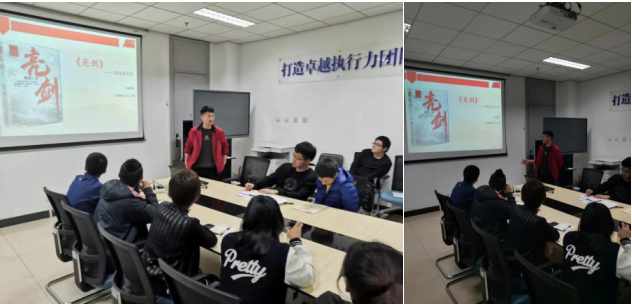 闫浩浩同志首先对《亮剑》一书的作者都梁做了简要介绍,接着,他对《亮剑》一书的创作背景做了简要概括。他提到,正是因为作者有过少年参军的经历,所以才能写出如此铁血丹心的著作,才能塑造出这样一位豪气干云、肝胆照人的中国将军。