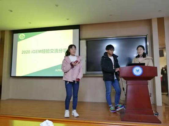 (通讯员 陈伟燊 赵若言)11月24日,304am永利集团官网在西电南校区G420教室展开了“IGEM大赛”经验交流分享活动,活动邀请了来自西安交通大学李佳璐、万一辉和来自西北大学朱俊杰、李凯、卢子敏等5位同学前来分享,他们都有丰富的IGEM大赛经验和优秀的比赛成绩。永利集团官网18级本科生郑佳欣主持本次活动。