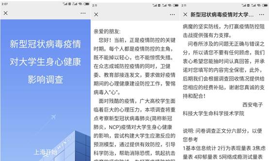 大学生心理健康问题一直以来备受关注,疫情之下,更需谨防病毒入“心”。在学校和学院领导的大力支持下,CBI脑影像与健康研究团队迅速行动,通过网络会议的方式对研究方案、技术细节等进行了反复、详细地讨论,在很短的时间内就设计开发了调查大学生身心健康状况的网络信息采集平台,针对本次疫情对大学生群体心理健康的影响进行调查研究。