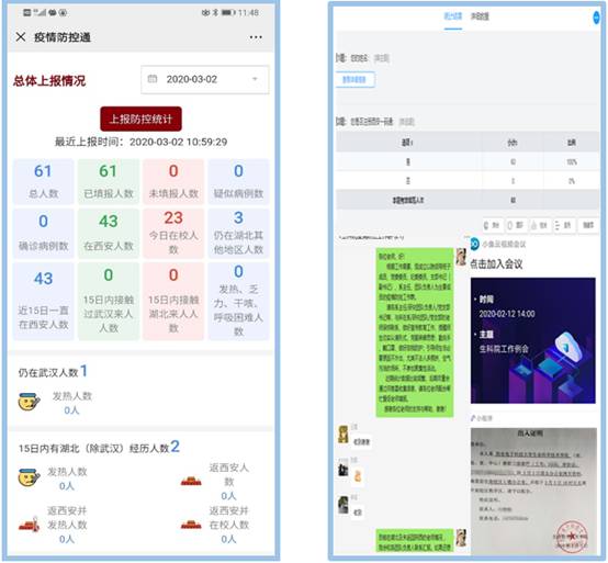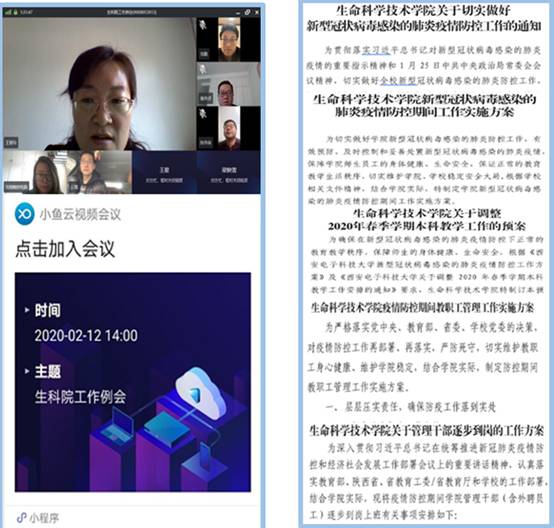 学院领导班子、管理干部、学工干部第一时间进入战时状态,确保24小时“在线、在岗、在状态”,当好“战斗员”、“宣传员”、“保障员”,采取线上办公模式,确保政令执行到位、问题处理及时。学院召开3次党政联席(扩大)视频会、多次工作专题研讨视频会,保障疫情防控阶段学院各项工作落到实处。