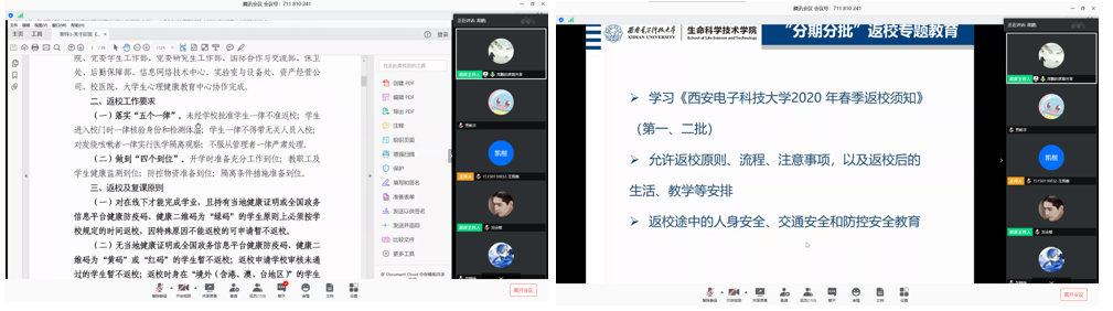 铺导员高鹏在学习结束后继续在腾讯会议上解答同学们提出的返校后生活学习方面的一问,以保证同学们返校后的正常生活学习,帮助同学们安全返回校园,顺利完成学业。