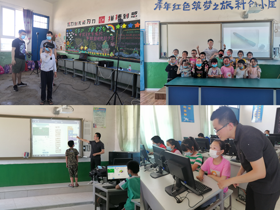学院李军老师和学生于纪伟来到科创小屋,指导孩子们戴上VR虚拟眼镜,感受真实的心脏结构,带领孩子感受虚拟现实技术带来的奇妙体验;刘二龙老师走进多媒体教室,为同学们讲授程序设计的启蒙课程。通过这些科教启蒙活动,激发了学生们对科学技术的好奇心和学习的兴趣。