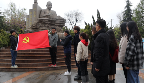 随后,全体同学乘车前往柳青广场参观学习,深切缅怀人民作家柳青,献身人民事业奋斗一生的丰功伟绩,学习他深入生活、扎根人民、为人民而歌的崇高精神。在柳青先生雕像前,大家面对鲜红的党旗,全体党员高举右拳,重温入党誓词。“我志愿加入中国共产党……”字字铿锵,铮铮誓言响彻整个现场,革命先烈崇高的精神品质和伟大的英雄主义情怀在这一刻深深印刻在每个党员内心深处。