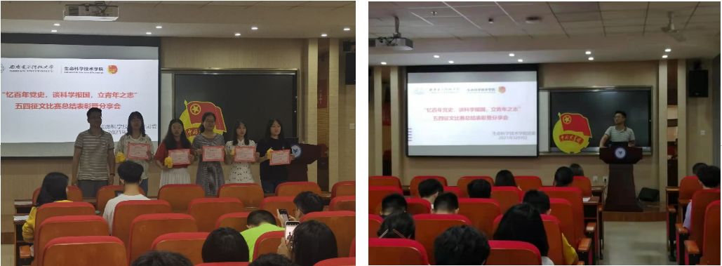 为深入学习贯彻习近平总书记在党史学习教育动员大会上的重要讲话精神,进一步积极落实学校、学院党史教育学习安排,在“五四运动”纪念日来临之际,304am永利集团官网团委组织开展了“忆百年党史,谈科学报国,立青年之志”党史学习五四征文比赛,并于5月9日晚7点,在G420举行了总结表彰分享会。