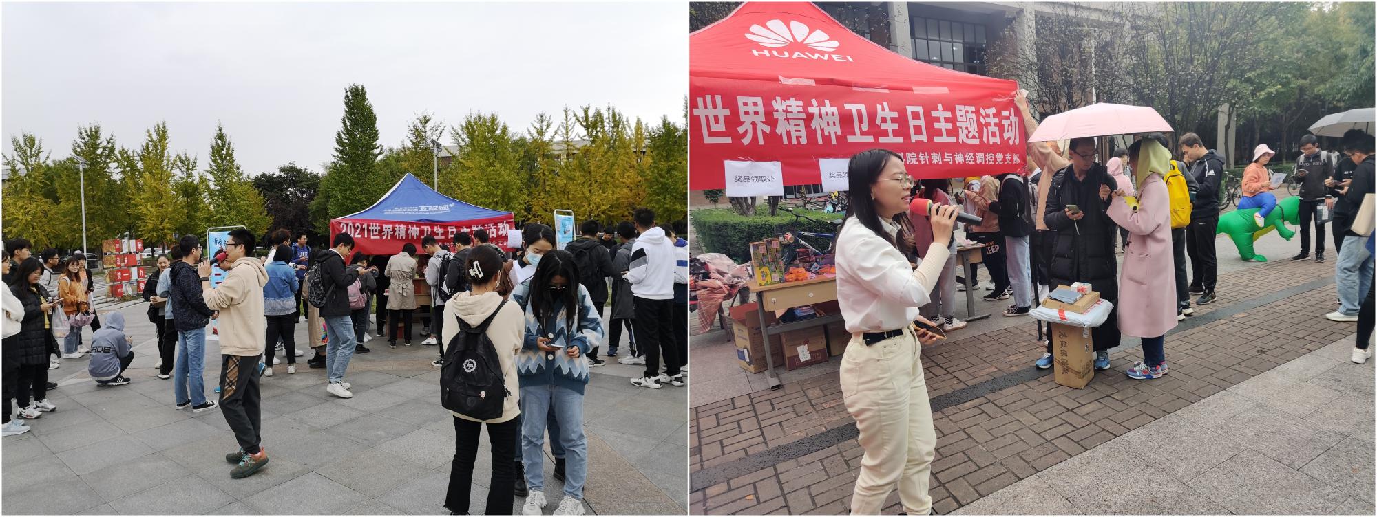 2021年10月15日,304am永利集团官网智能非侵入神经调控研究团队在学院党委的领导和支持下,联合针刺与神经调控教师、研究生党支部,共同发起本次世界精神卫生日主题宣传活动。这也是该支部继今年十月份赴渭南市精卫中心开展科技成果捐赠活动之后,进行的“科研服务社会”第二期系列活动。该系列活动的宗旨是,运用团队科研方向专业知识,反哺社会,为广大群众办实事。