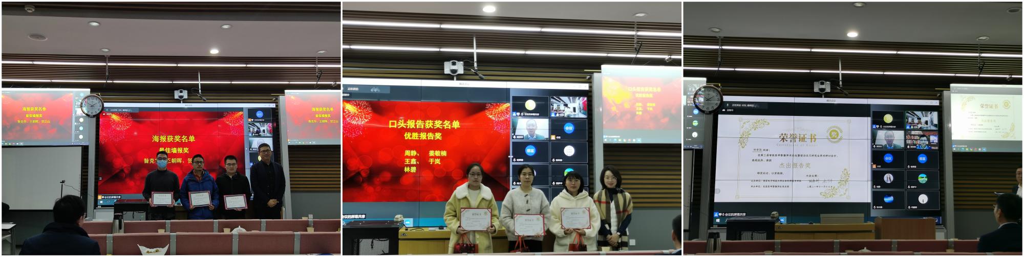 在专家学者和校友的精彩报告之后,论坛进行了研究生口头报告环节,8位入选口头报告环节的研究生依次进行了课题成果介绍,该环节邀请了7位生物医学影像领域的专家在线上、线下对报告进行打分评优,最终来自南方医科大学皮肤病医院的郑举敦带来的《基于光声可逆探针连续比例传感和体内氧化还原状态成像的动态可逆光声探测》赢得了满堂喝彩,获得了大会“杰出报告奖”。此外按照论坛传统,论坛还进行了未能入选口头报告的学生们的海报进行评优,通过1分钟快闪介绍和海报展示,由参与学生投票选出3名优秀海报奖。