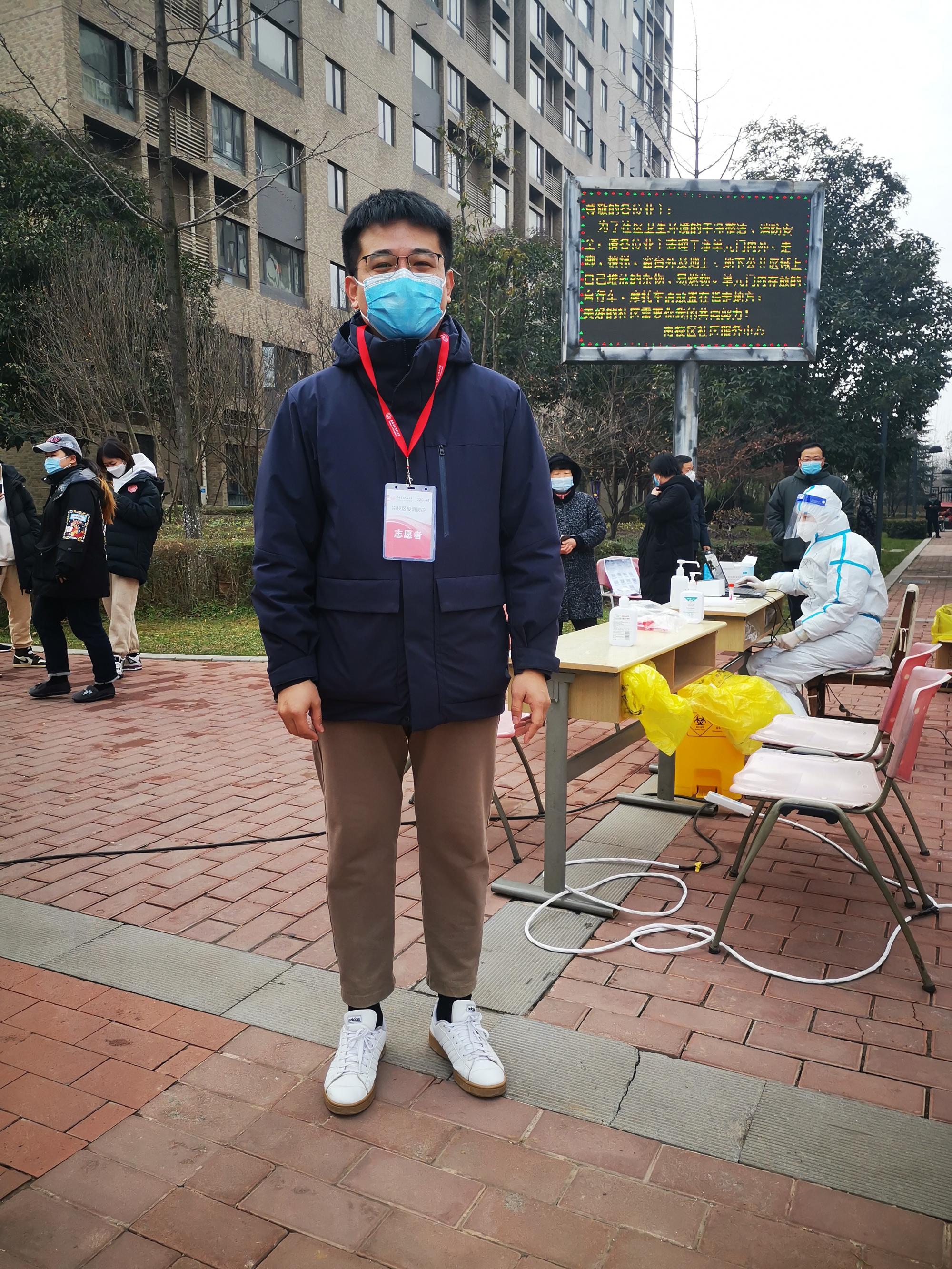 “我从小在这个小区长大,知道以我的年纪属于小区‘壮劳力’。我母亲是热心肠的人,受她影响我选择冲上去。”志愿者曾琦老师是北校区家属区核酸专班的“大白”,每天与其他志愿者一起完成社区数百人的核酸采样工作,在完成核酸专班工作之余,还主动参加物资搬运配送等工作。尽管身兼数职,曾老师仍然谦虚地说:“与我们核酸专班负责人付少峰老师和65岁多还主动在一线工作的王晓丽阿姨相比,我做的这点工作不算什么。”