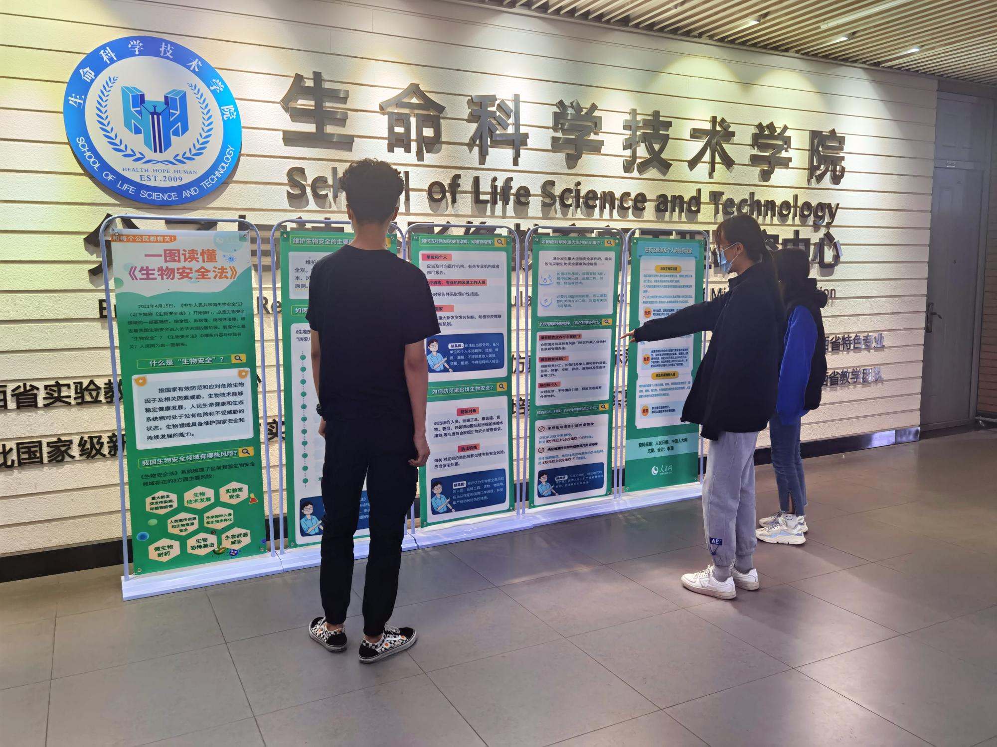 为增加生物安全普及的趣味性,学院制作了精美的展板,以图文并茂的形式,直观展现了生物安全的概念,旨在多维度、全景式地宣传展示生物安全体系,吸引了众多同学围观学习,大家在趣味中了解《生物安全法》,进一步理解国家安全的内容。