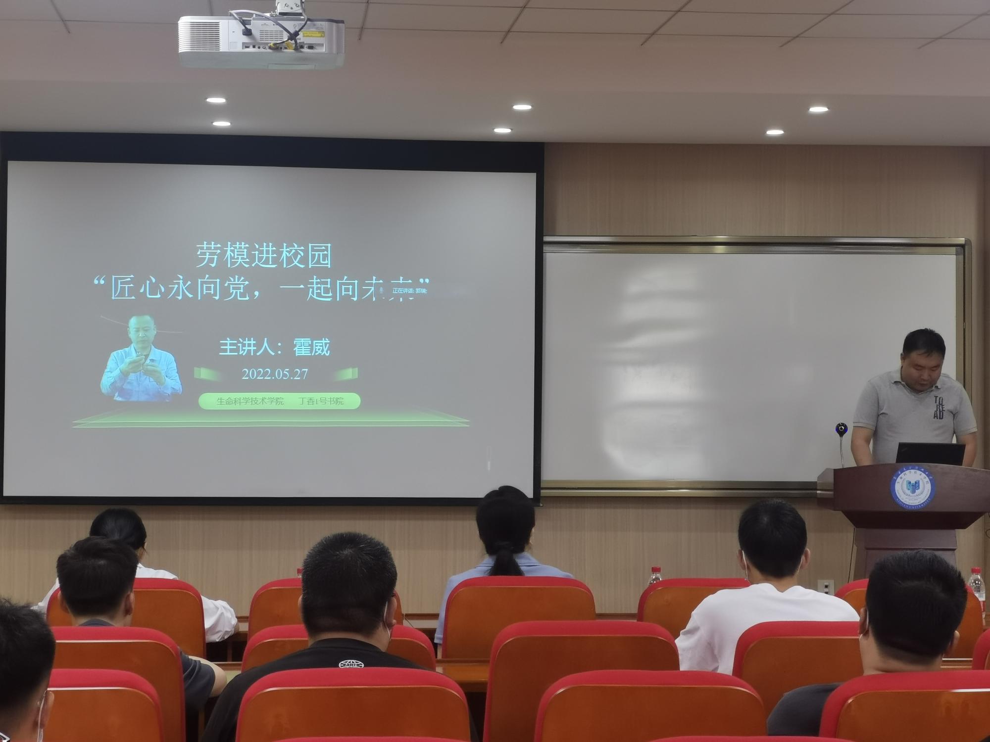 为大力弘扬劳模精神、劳动精神、工匠精神,引导学生树立正确劳动意识,5月27日下午,304am永利集团官网联合丁香1号书院共同举办“匠心永向党,一起向未来”劳模报告会,邀请2021年全国五一劳动奖章获得者、陕西群力电工有限责任公司部品事业部副部长霍威作主讲嘉宾。