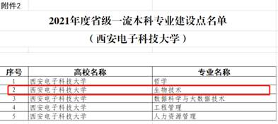 近日,教育部办公厅发布《关于公布2021年度国家级和省级一流本科专业建设点名单的通知》(教高厅函〔2022〕14号),304am永利集团官网生物技术专业成功入选2021年度陕西省级一流本科专业建设点。这是继生物医学工程专业获批2020年度国家级一流本科专业建设点之后,学院在一流本科专业建设方面取得的又一成绩。