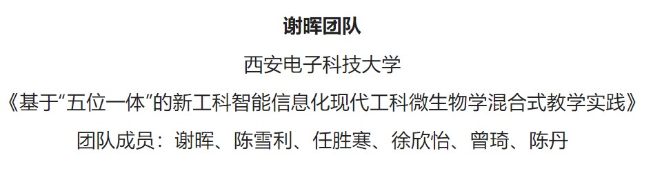 谢晖团队近年来开展了基于多模态融合在线课程学习全过程智能评价教学改革实践及研究工作,课程基于主讲教师主编的新工科信息化教材、多维度在线学习平台、移动端学习拓展及虚拟仿真综合实践平台,结合自主研发全过程智能评价模型,突破传统线上单一的视频学习及课后测试,达到多维度、交互式、模块化高效线上学习,确保了学生全过程在线学习质量,在线上线下混合式教学和疫情期间全过程在线教学中取得了较好的效果,先后获得全国高校混合式教学设计创新大赛一等奖、陕西省首届课堂教学创新大赛一等奖、陕西高校疫情期间本科在线教学典型案例等荣誉。