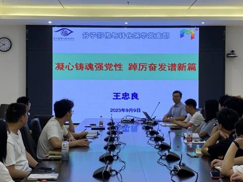 活动伊始,团队负责人王忠良教授为全体师生讲授以“凝心铸魂强党性,踔厉奋发谱新篇”为题的党课,他强调了分子影像与转化医学党支部面向国家重大需求和人民生命健康的科研目标,以及对高质量科研的不懈追求,指出研究生阶段的学习和科研工作是充满挑战和艰辛的,只有通过不懈的努力和勤奋的实践,才能取得优异的成果和成就。王忠良教授通过分享自身科研经历,指出科研过程中的重点、难点之处,鼓励新生们要培养批判精神,在科研中要有工作激情,要善于运用自己所学的专业知识,勇于探索未知,攻坚克难、勇攀高峰。王忠良教授最后强调了实验室安全的重要性。